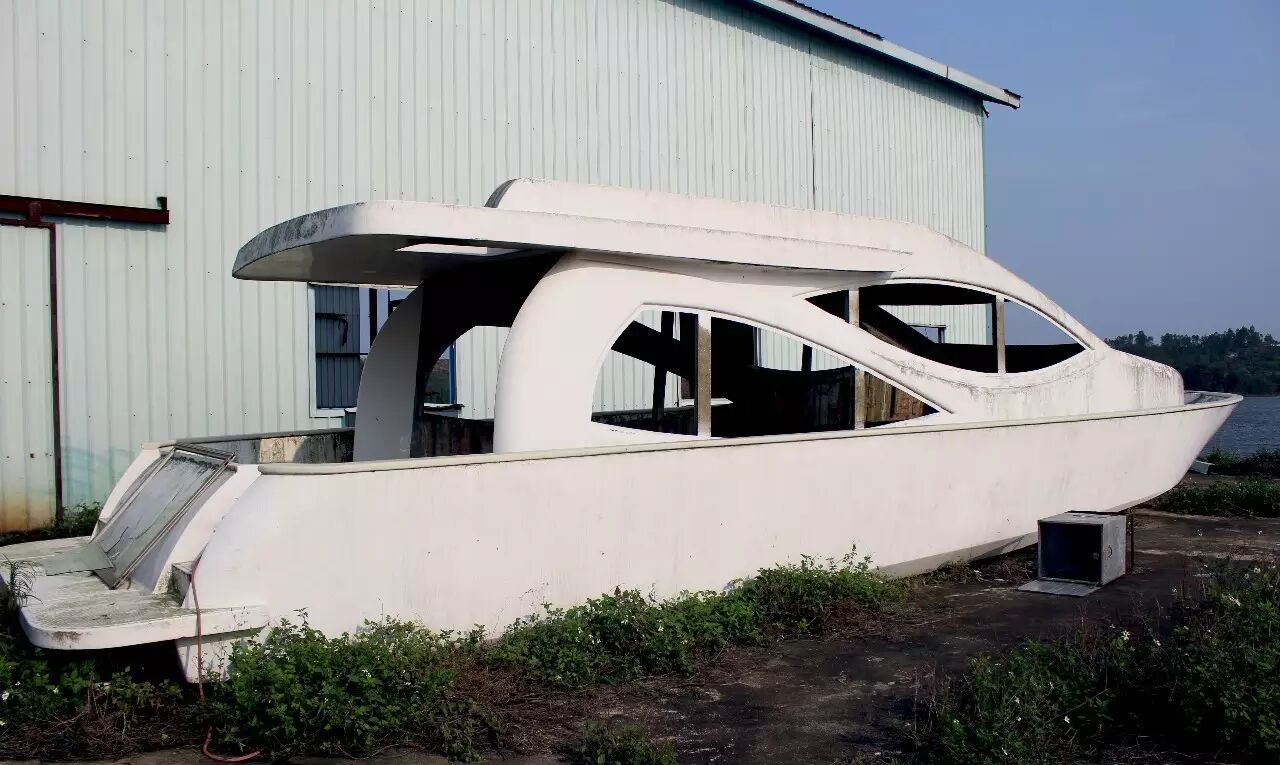 旁边有间废弃的工厂,不知作何用途 大风吹得的顶棚脱落的铁皮 让这寂静的地方有了唯一的声音 发现两艘废弃的游艇散落在不同的地方