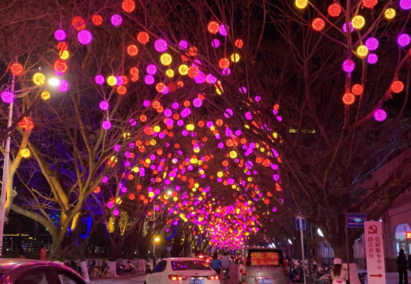 色彩斑斓彩灯的点缀下 茂名的年味越来越浓啦