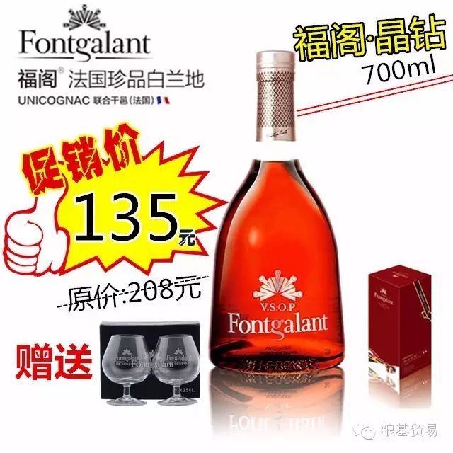 FONTGALANT 目前是美国进口白兰地销量第一的品牌,是法国联合干邑公司在海外新兴市场中的明星产品。 如今他已经来到中国,他的中文名为“福阁”。
