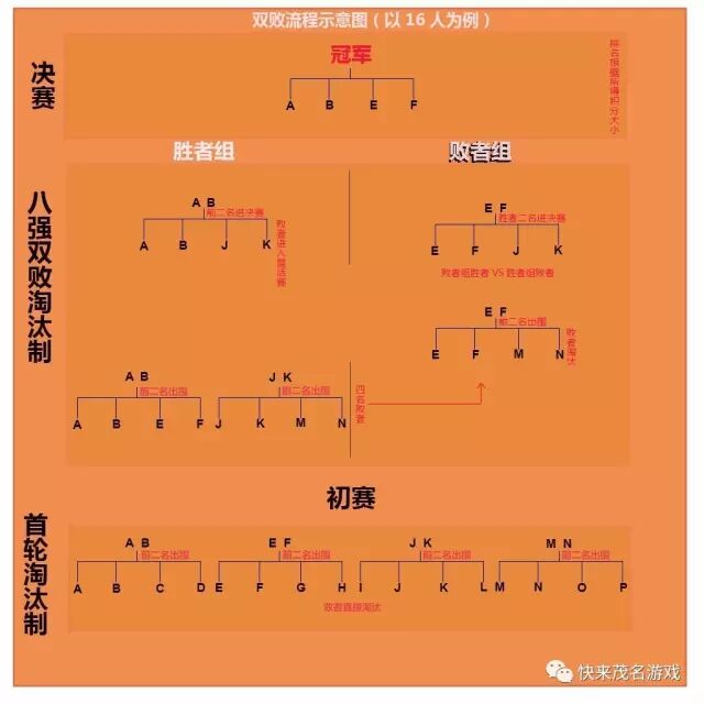 5、淘汰赛,游戏比赛为一轮(8局)定胜负,胜数最多或负分最少的前两位晋级。